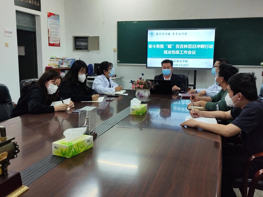 为了全面贯彻落实省教育厅、学校党委及学院关于加强高校毕业生就业工作的相关精神和要求,更好地推动落实学校党委关于就业工作包保责任制,加大精准指导与帮扶力度,全员助力毕业生就业,4月28日晚,药品食品学院举行了2022届毕业生就业包保工作部署会。药品食品学院院长于景龙、副院长王月珍,党总支副书记解蕙铭以及全体教师参会。会议采用线上线下相结合形式进行,学院办公室主任马春娟主持会议。