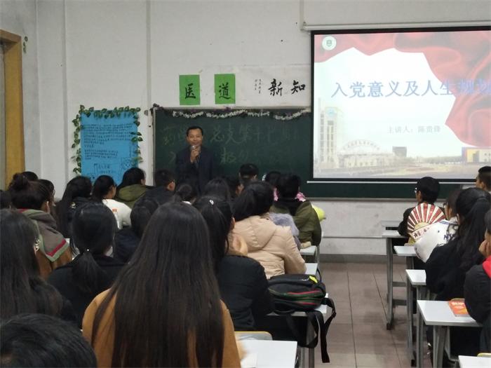 11月7日晚,校党委副书记兼纪委书记陈贵锋同志为药品食品学院近百名入党积极分子作主题为“入党意义与人生规划”党课培训。