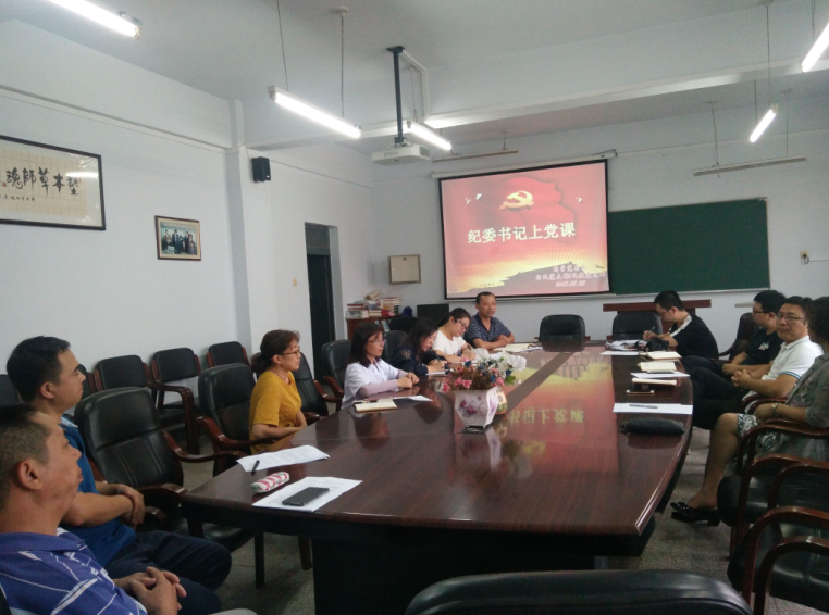 2018年08月28日下午,在药学楼六楼会议室校党委副书记陈贵锋为药学党总支全体党员上了一次生动的爱国主义党课教育。