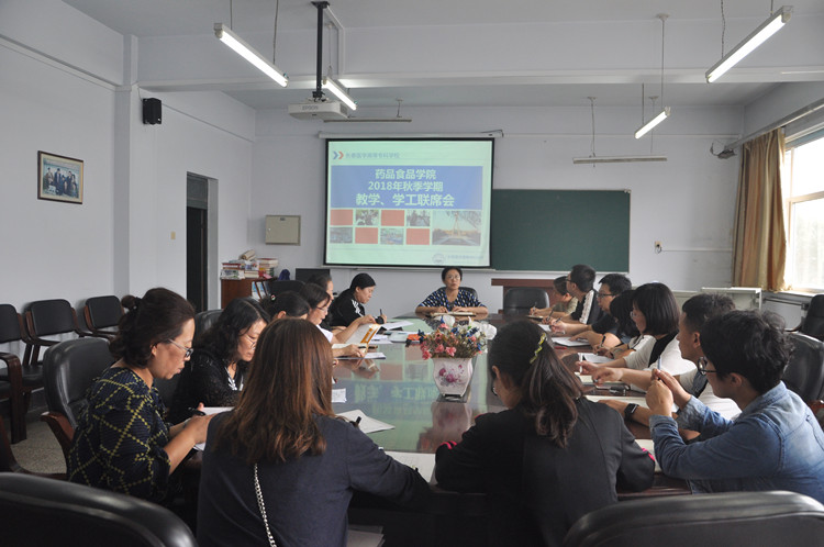 8月29日下午,药品食品学院在药学楼六楼会议室召开假期实习安全检查总结会,各教研室主任、学办全体及实习班辅导员参加会议。会议由院长孙莹主持。