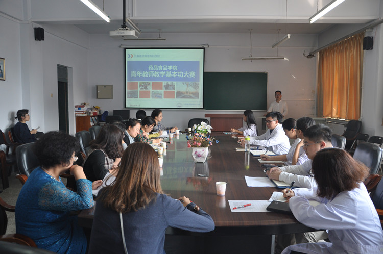 9月12日下午,药品食品学院在药学楼六楼会议室举行第一届青年教师教学基本功大赛,学院近三年入职专兼职教师参加比赛,比赛由院办汪岩主持。