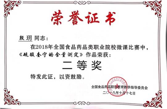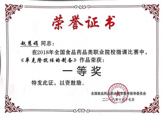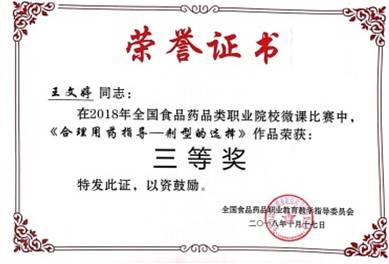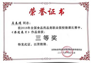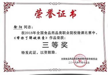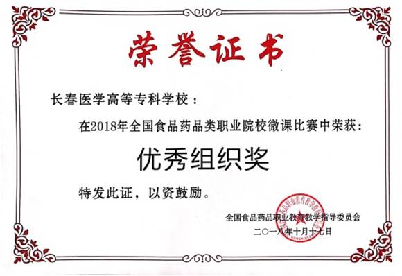 2018年10月19日-21日,由全国食品药品职业教育指导委员会主办的2018年食品药品类职业院校微课比赛颁奖典礼在重庆举行。