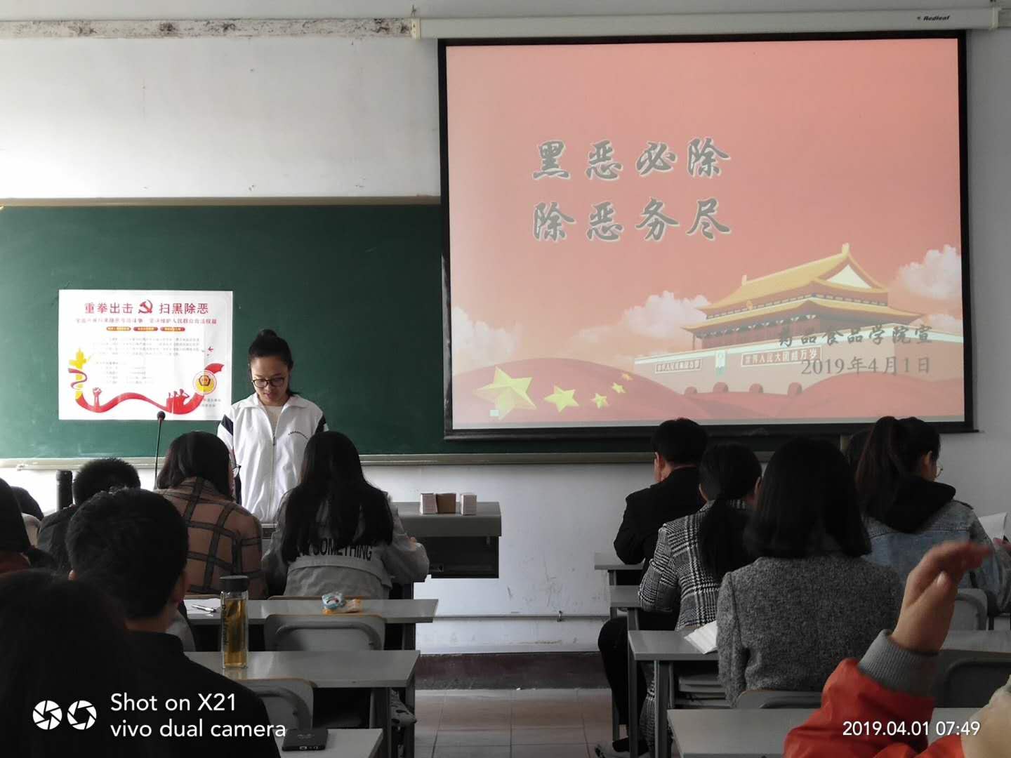 为进一步推进扫黑除恶专项斗争向纵深发展,落实好学校关于“扫黑除恶”的专项工作部署,深入开展扫黑除恶专项斗争,共建共治共享和谐平安校园。4月1日早,药品食品学院团总支组织在校党员积极分子和优秀学生干部开展了"扫黑除恶 弘扬正气"专项倡导活动。